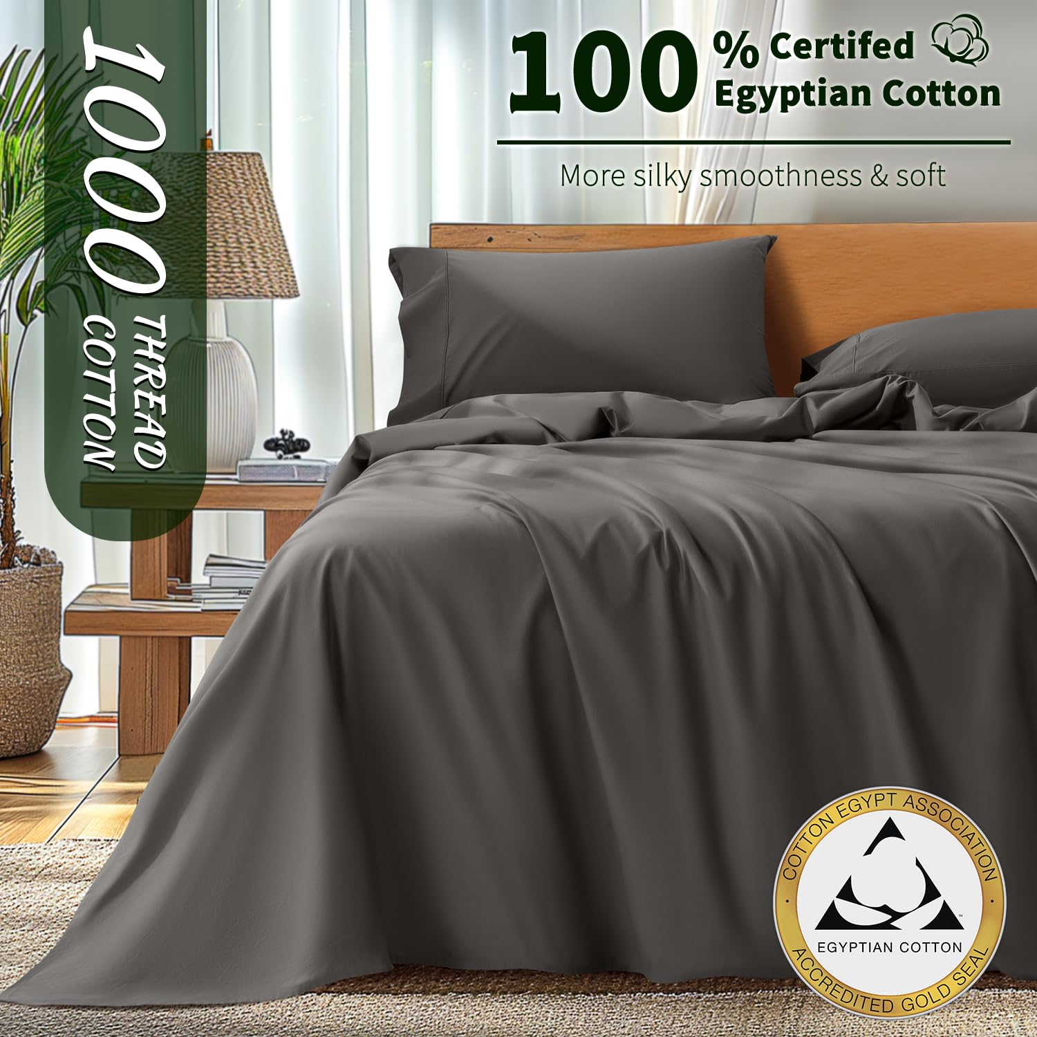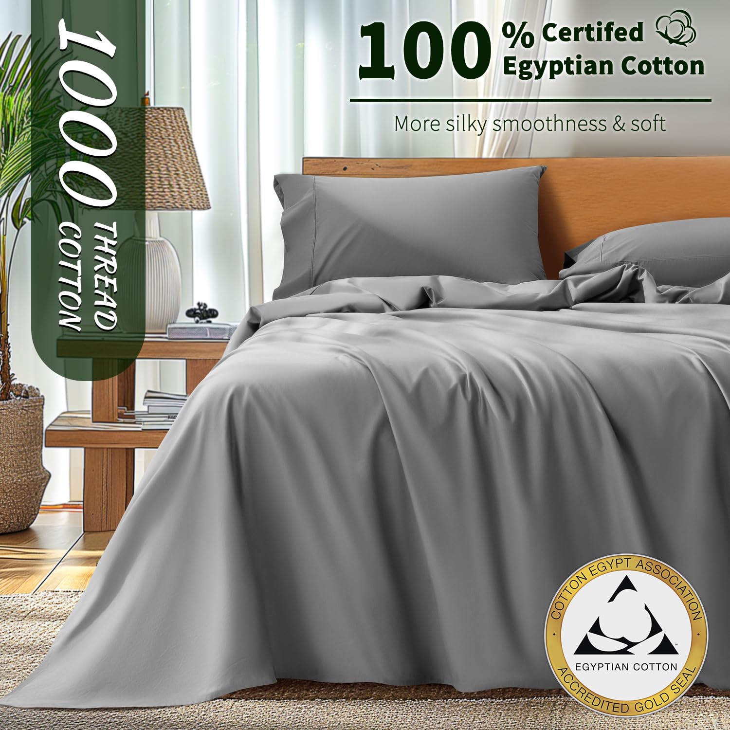 - EXPERIENCE LUXURY AND SOFTNESS: Crafted for a heavenly experience, our glorious 1000 thread count sheets have the perfect cozy feel for your good night’s sleep. These lavish bedding sets are made using 100% Egyptian Cotton yarns, giving them superior softness and smoothness. They are the epitome of luxury and durability packed in one. The breathable sateen weave gives the sheets a natural sheen and makes them perfect for people sweating at night, bringing you a cloud like sleep experience