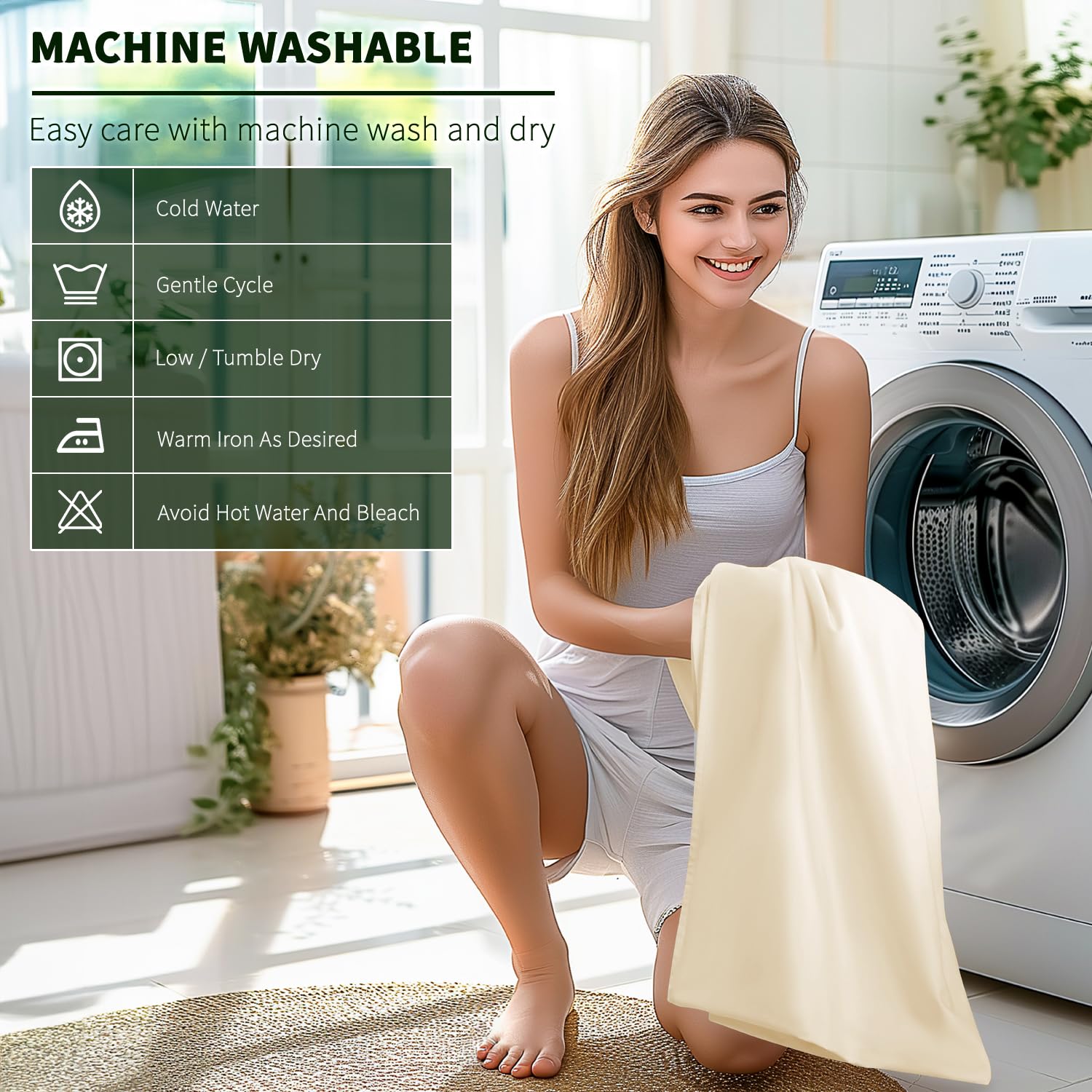 - EASY TO CARE: Bid adieu to the worry of loose fibers with our extra long staple cotton bedding. Each sheet is expertly woven to ensure no pilling and long-lasting strength. For these machine washable sheets, laundry care is very simple. To avoid shrinkage and prevent wrinkles, we recommend machine washing the sheets at room temperature, tumble dry them on low, and folding them immediately after. You will find that these sheets are still as soft and skin friendly as new