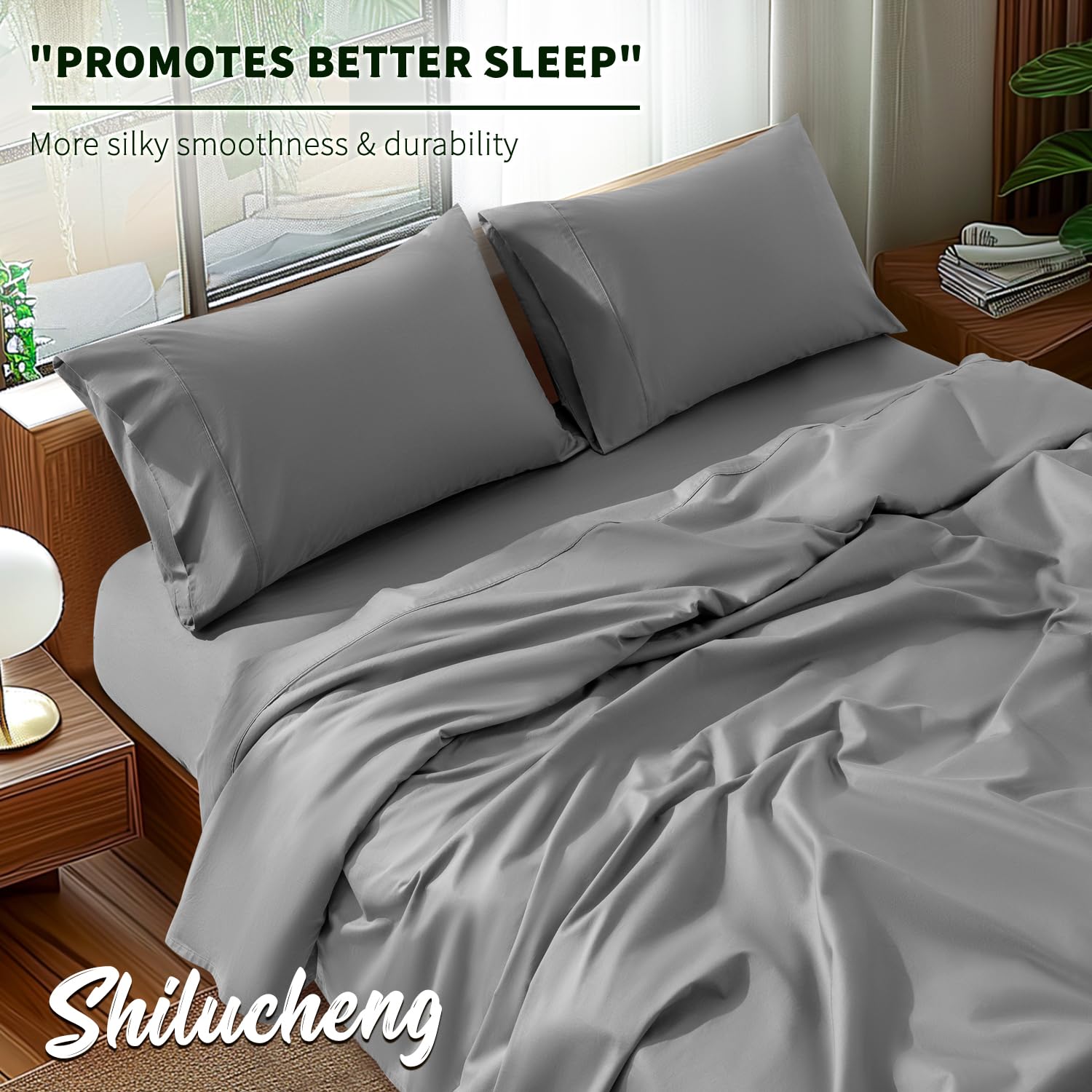 - SNUG FIT:Looking for a fitted sheet in the 4-piece set that actually stays in its place and doesn't come off? Our fitted sheet comes with an all-around elastic to fit your mattress perfectly. The head/foot side indicator tells you how to make the bed easily. WHAT'S INCLUDE: Each Queen Size Sheet Set comes with 1× Fitted Sheet 60"×80"×16" + 1× Flat Sheet 90"×102"+2× Pillowcases 20"×30"