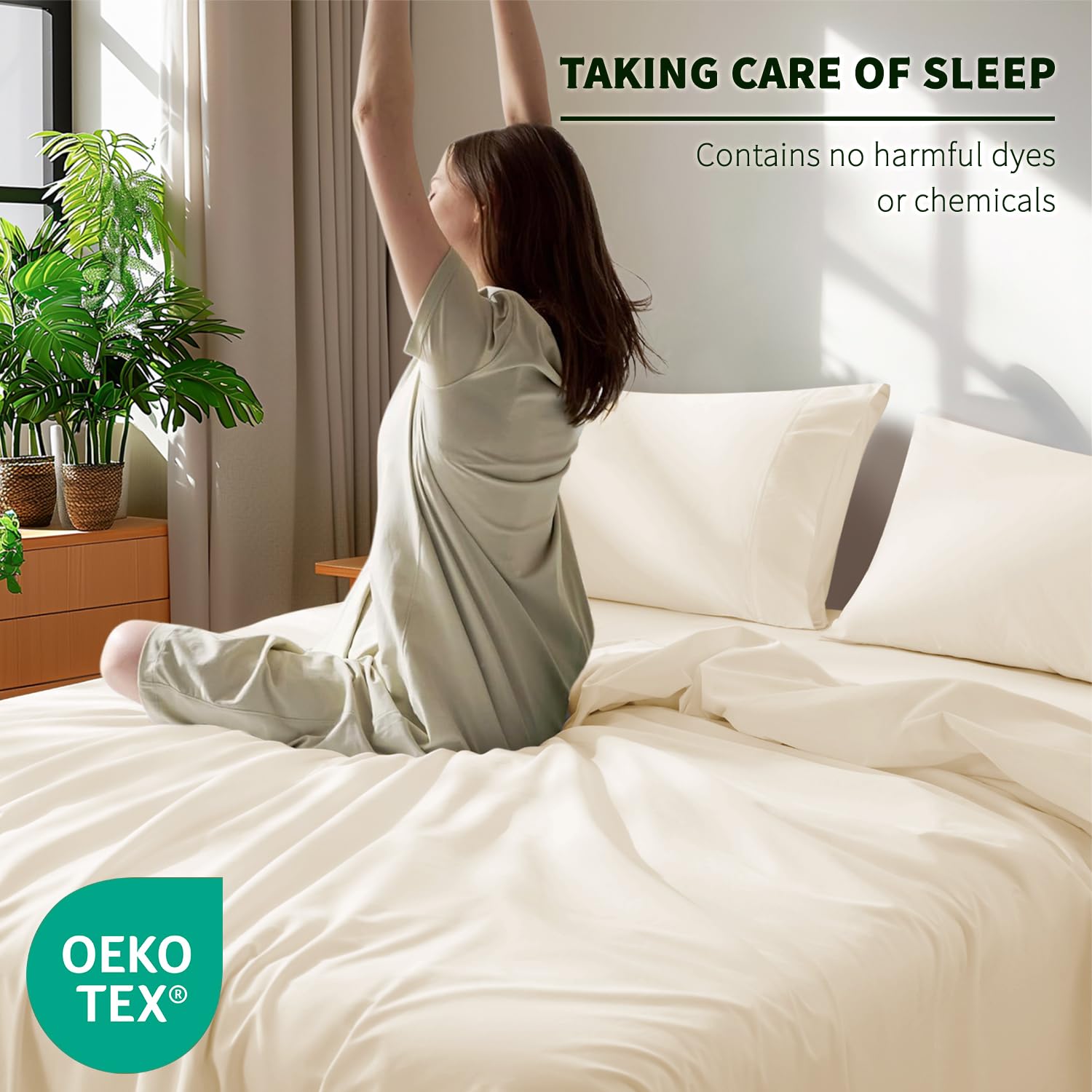 - CERTIFICATION, SUSTAINABILITY & ENVIRONMENTAL PROTECTION: Our 100% pure Egyptian cotton bed sheets are certified to Oeko Tex Standard 100 and are free of harmful chemicals. They also have and are superior to high-quality ultra-fine fiber bed sheets and other linen fabrics in appearance and feel. It can keep you cool and light, which is more beneficial to the environment. You can sleep well
