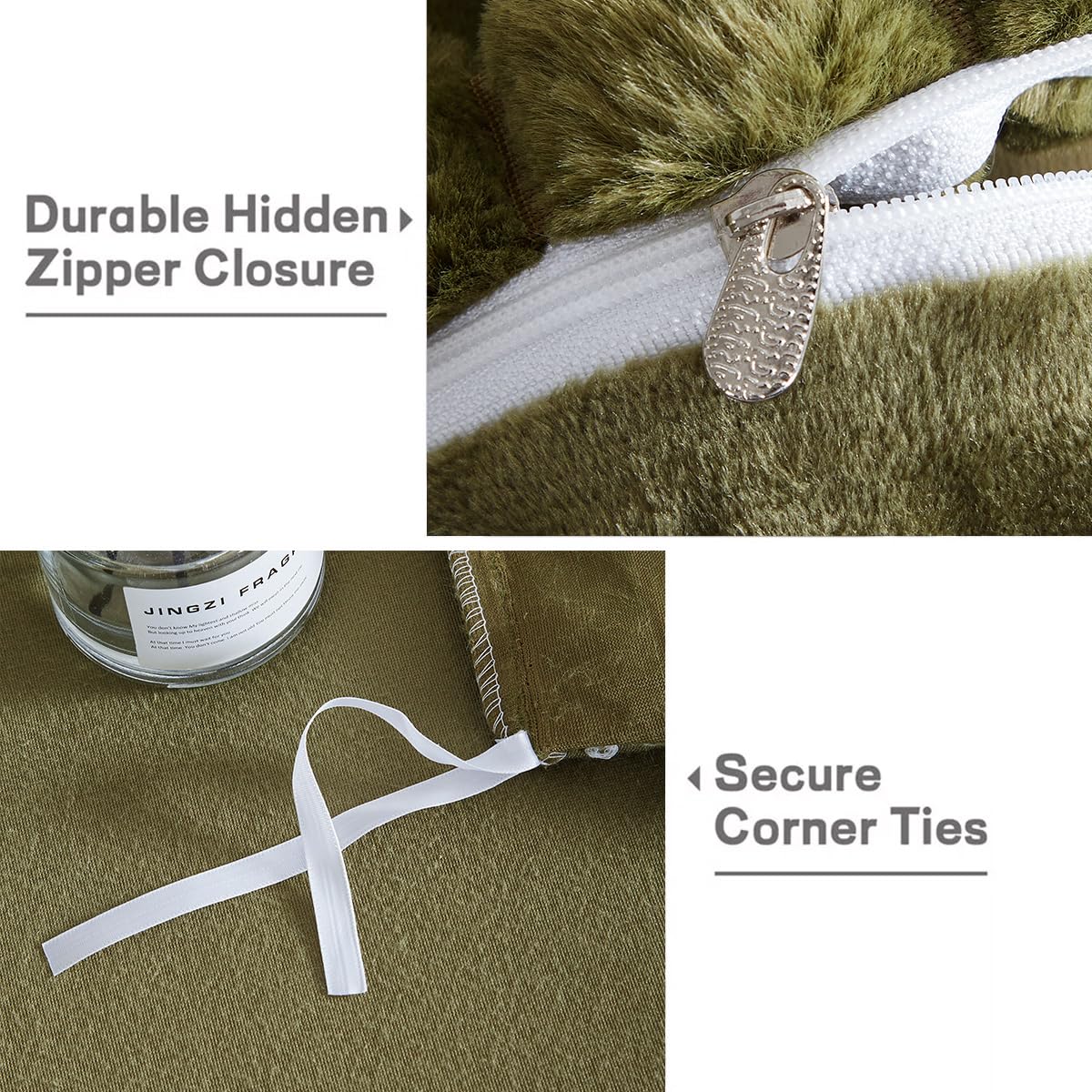 - Thoughtful Details: This green shaggy faux fur velvet duvet cover is designed with your comfort in mind. The delicately hidden zipper closure makes it easy to insert or remove your quilt, while the 4 strong corner ties keep it securely in place.