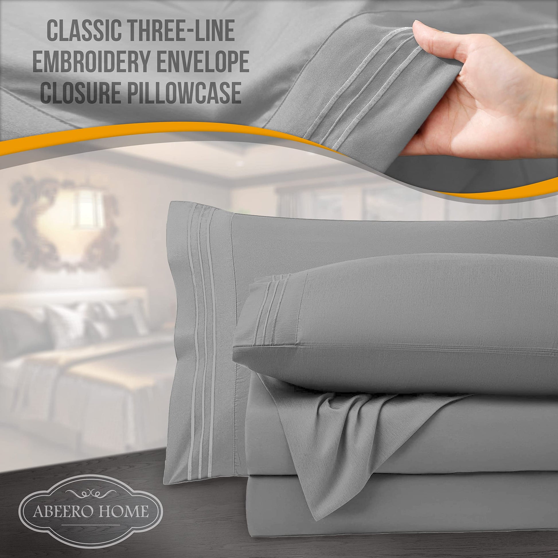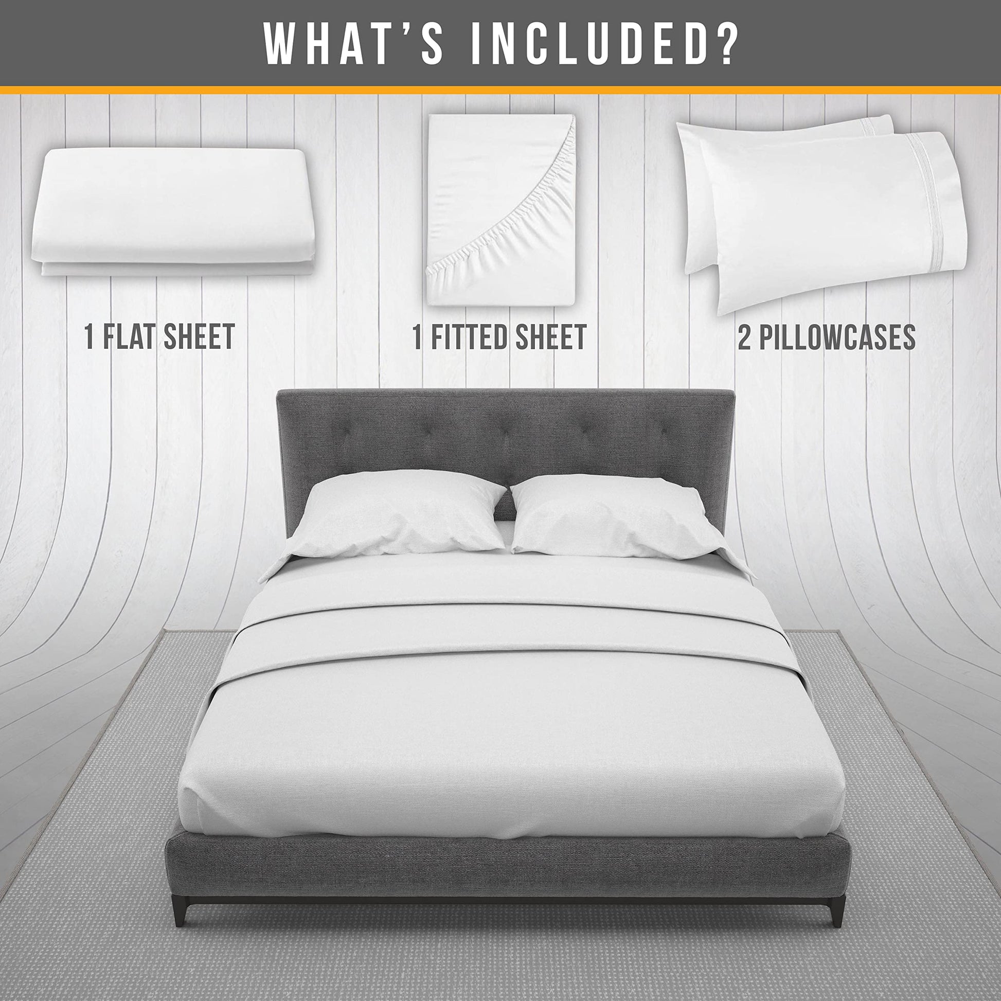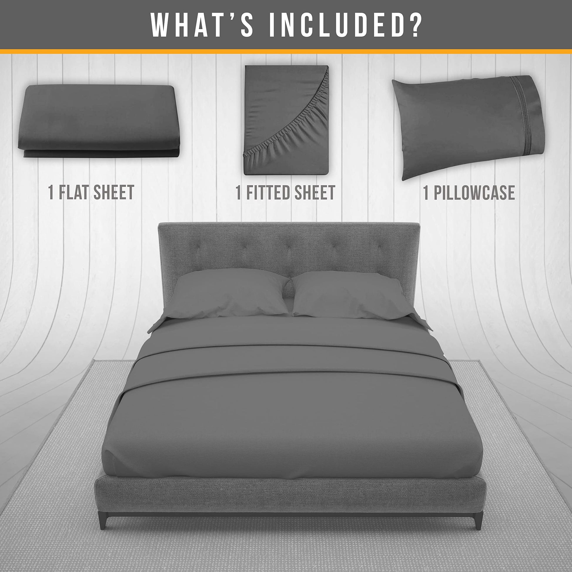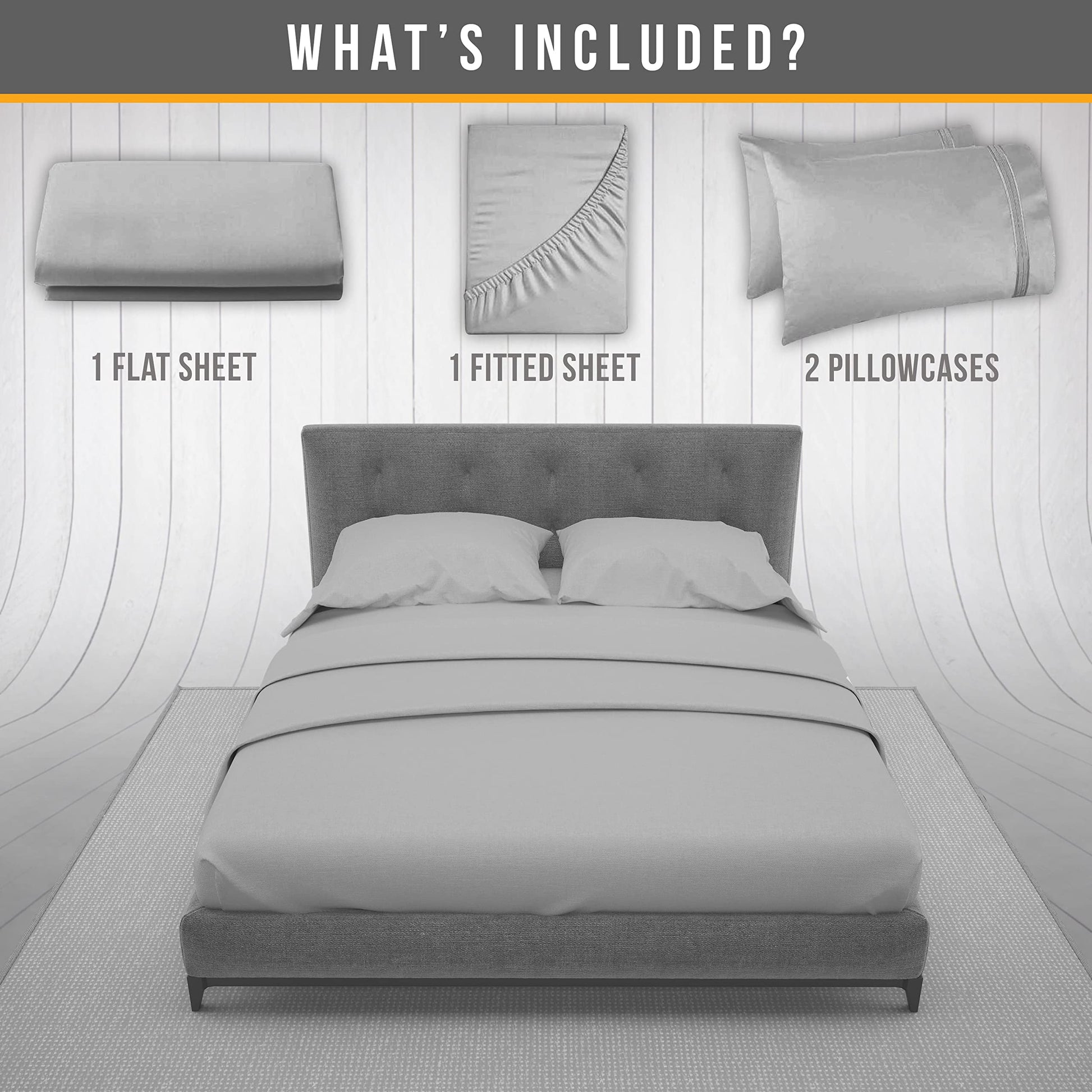 - 4 PIECE LUXURY QUEEN SIZE BED SHEETS SET – 1 flat sheet 102"x90", 1 fitted sheet 80"x60", 2 embroidered pillowcases 20"x30" complete bedding solution grey bed sheets